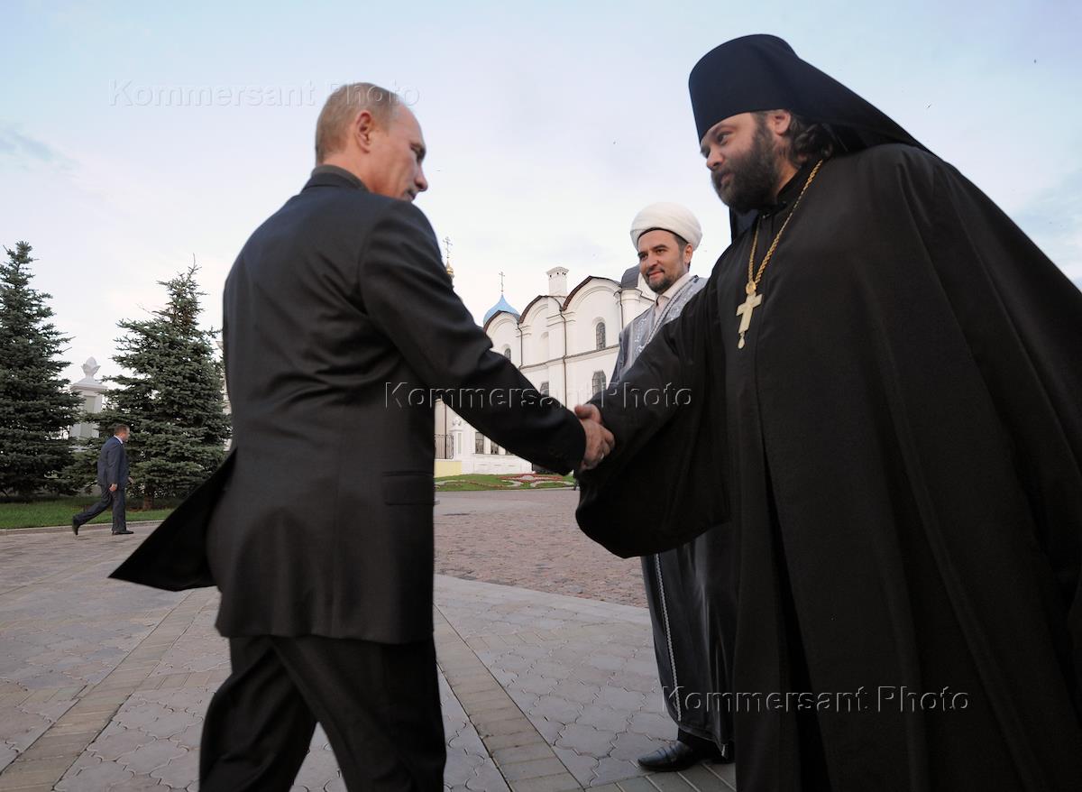 Председатель правительства России Владимир Путин (в центре) президент Республики Татарстан Рустам…