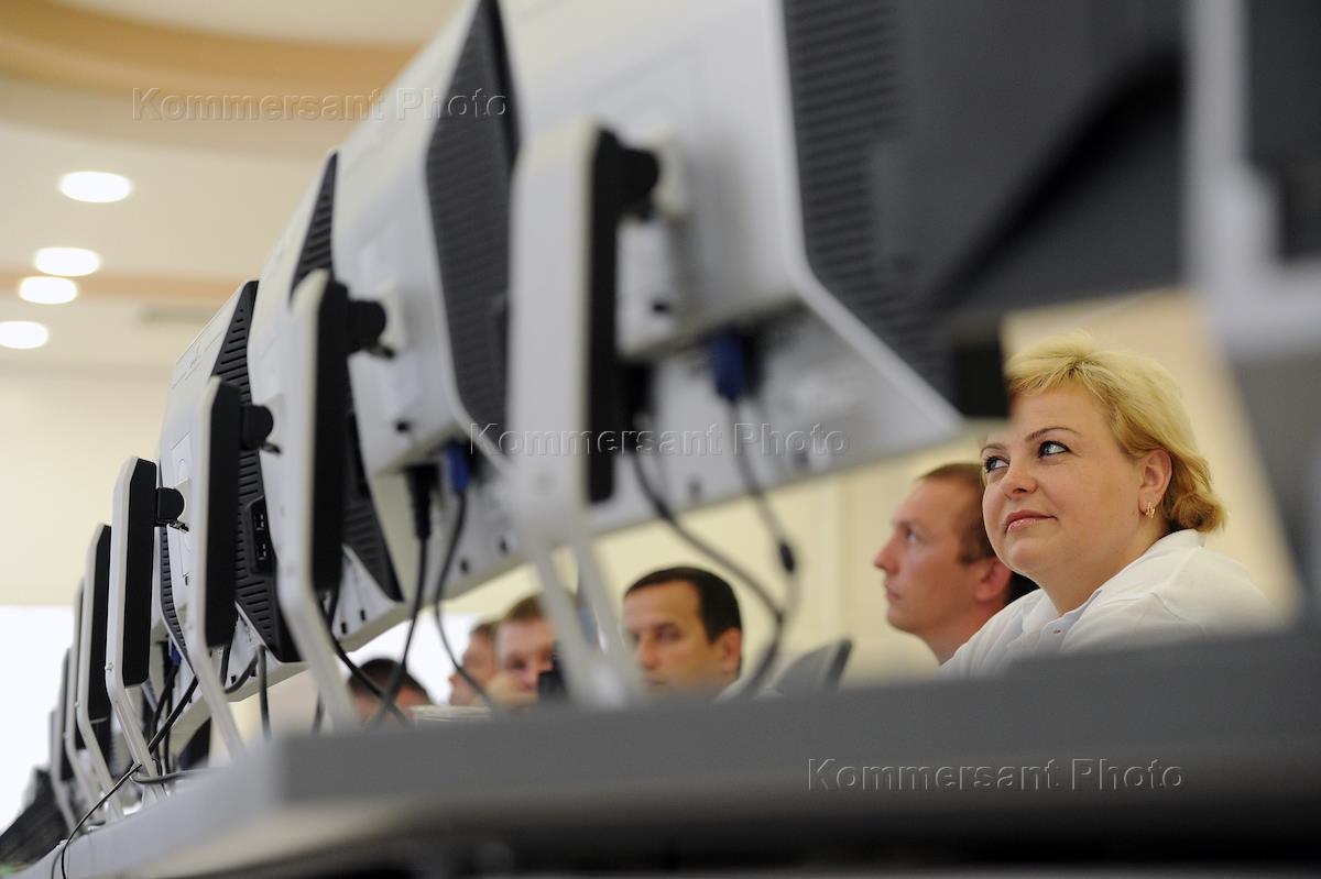 Церемония запуска завода "Щуровский цемент". Центр управления производством на заводе.