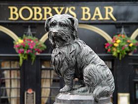 Виды Эдинбурга. Памятник скайтерьеру Бобби и паб Bobby’s Bar у входа на кладбище Грейфрайерз.