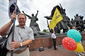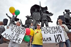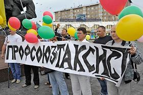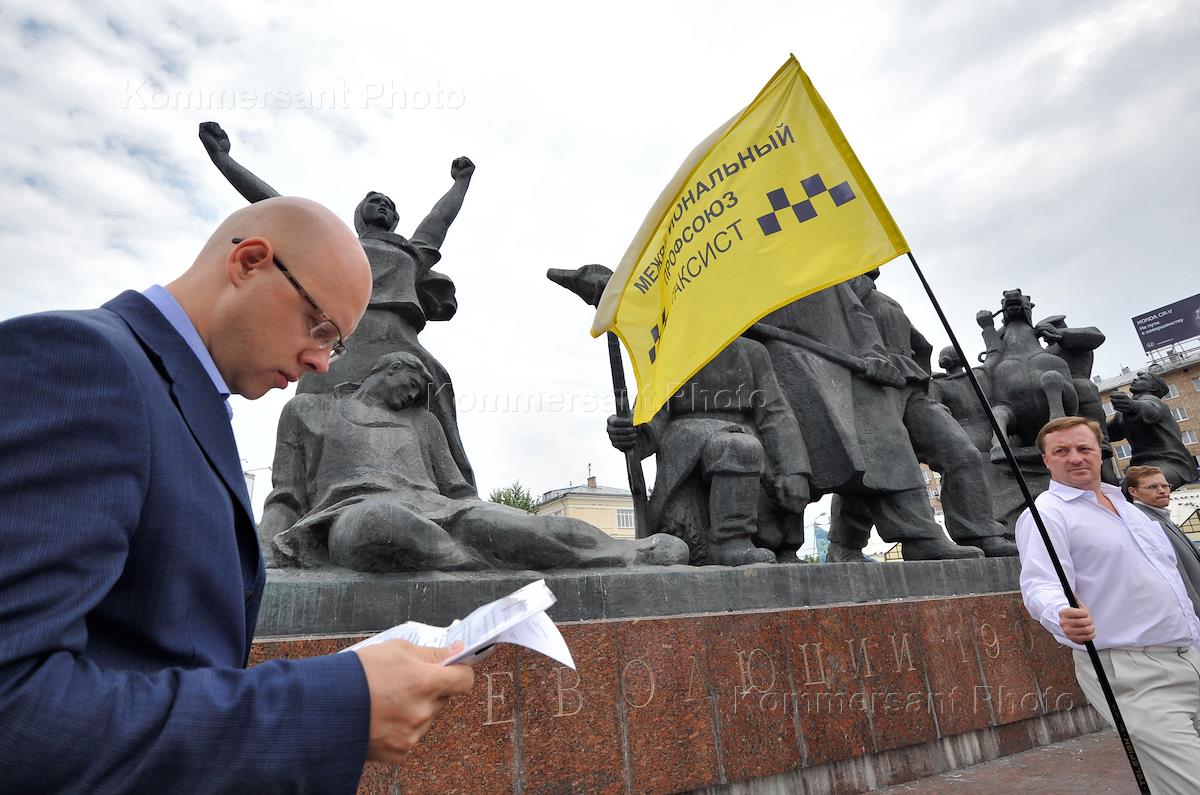 Экономика и бизнес Митинг межрегионального профсоюза столичных таксистов с целью изменить закон N 69, который регламентирует правила таксомоторных перевозок, у станции метро "Улица 1905 года".