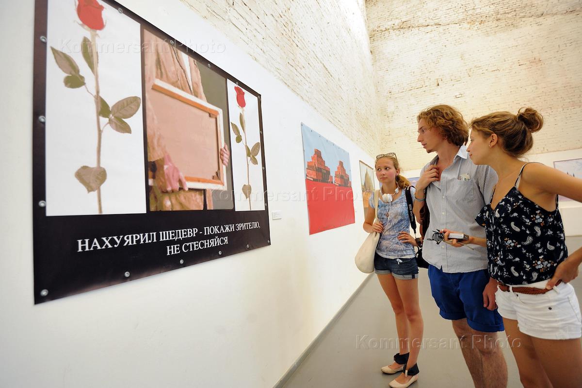 Посетители на выставке Константина Латышева "Комментарии". Выставка прошла в галерее "Айдан".