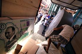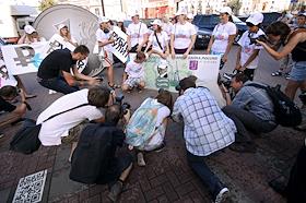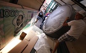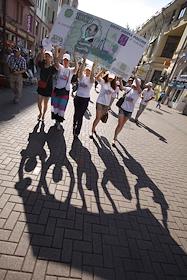 "Парад рубля" в поддержку российской валюты, организованный участниками группы Вконтакте "Мне реально нравится Путин", на улице Арбат.