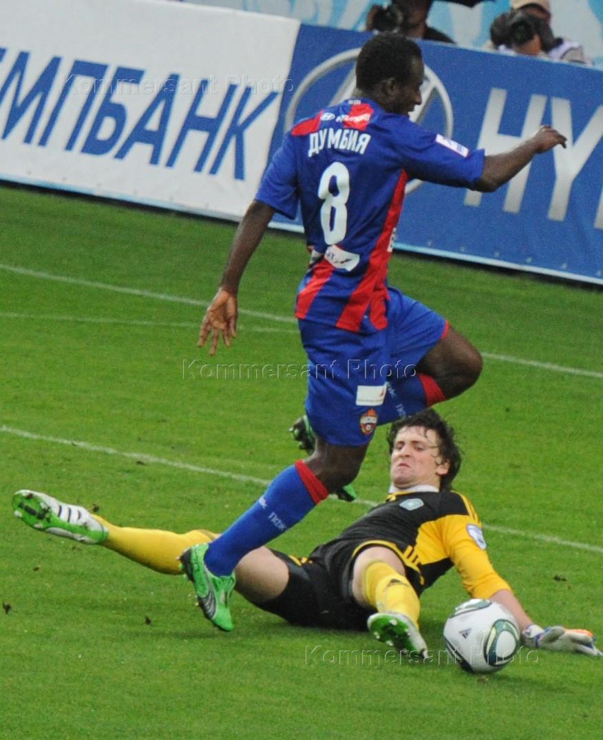 СОГАЗ Чемпионат России по футболу, 21 тур. Нападающий ЦСКА Сейду Думбия (слева) во время матча между…