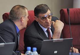 Члены Центральной избирательной комиссии (ЦИК) России Сергей Даниленко (слева) и Борис Эбзеев…