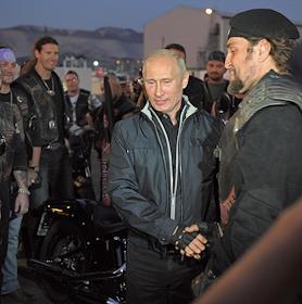 Председатель правительства России Владимир Путин (в центре) и лидер байкерского клуба "Ночные волки"…