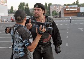 Лидер байкерского клуба "Ночные волки" Александр "Хирург" Залдостанов (справа) на XVI международном…