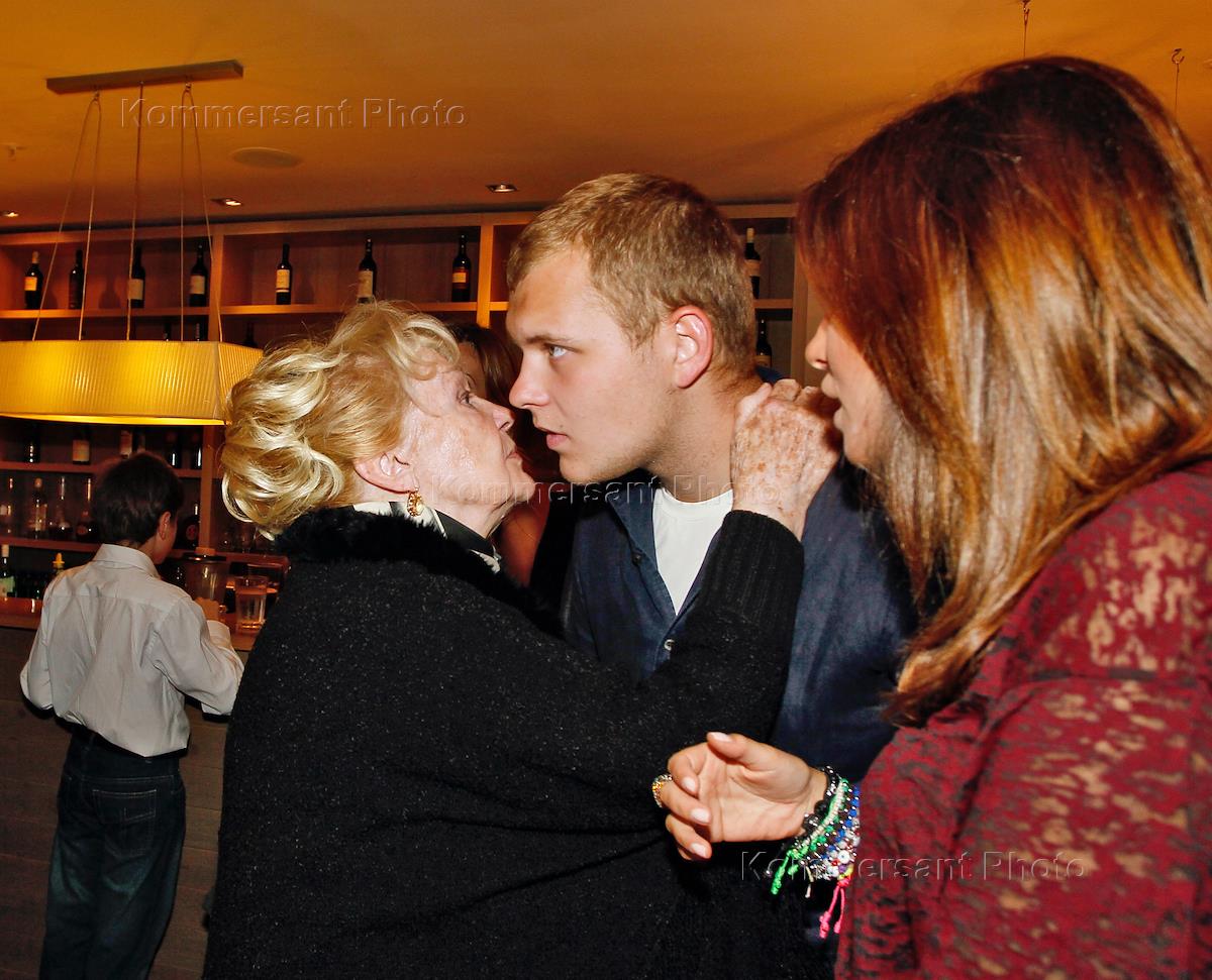 Актриса Ирина Скобцева (слева) и ее внук, сын режиссера Федора Бондарчука Сергей (в центре) на…