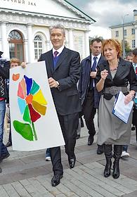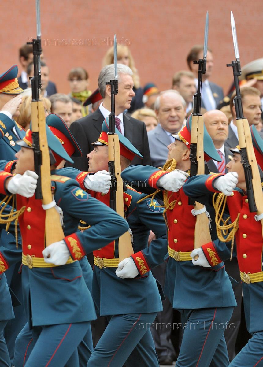 Мэр Москвы Сергей Собянин (в центре) во время проведения торжественных мероприятий, посвященных…
