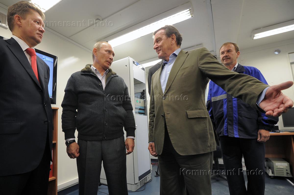 Председатель комитета акционеров компании "Северный Поток" (Nord Stream) Герхард Шредер (второй…