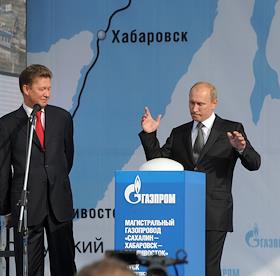 Председатель правления ОАО "Газпром" Алексей Миллер (слева) и председатель правительства России…