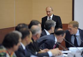 Председатель правительства России Владимир Путин (в центре) во время проведения совещания по вопросу…