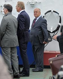 Министр обороны России Анатолий Сердюков (в центре) перед началом церемонии запуска в эксплуатацию…