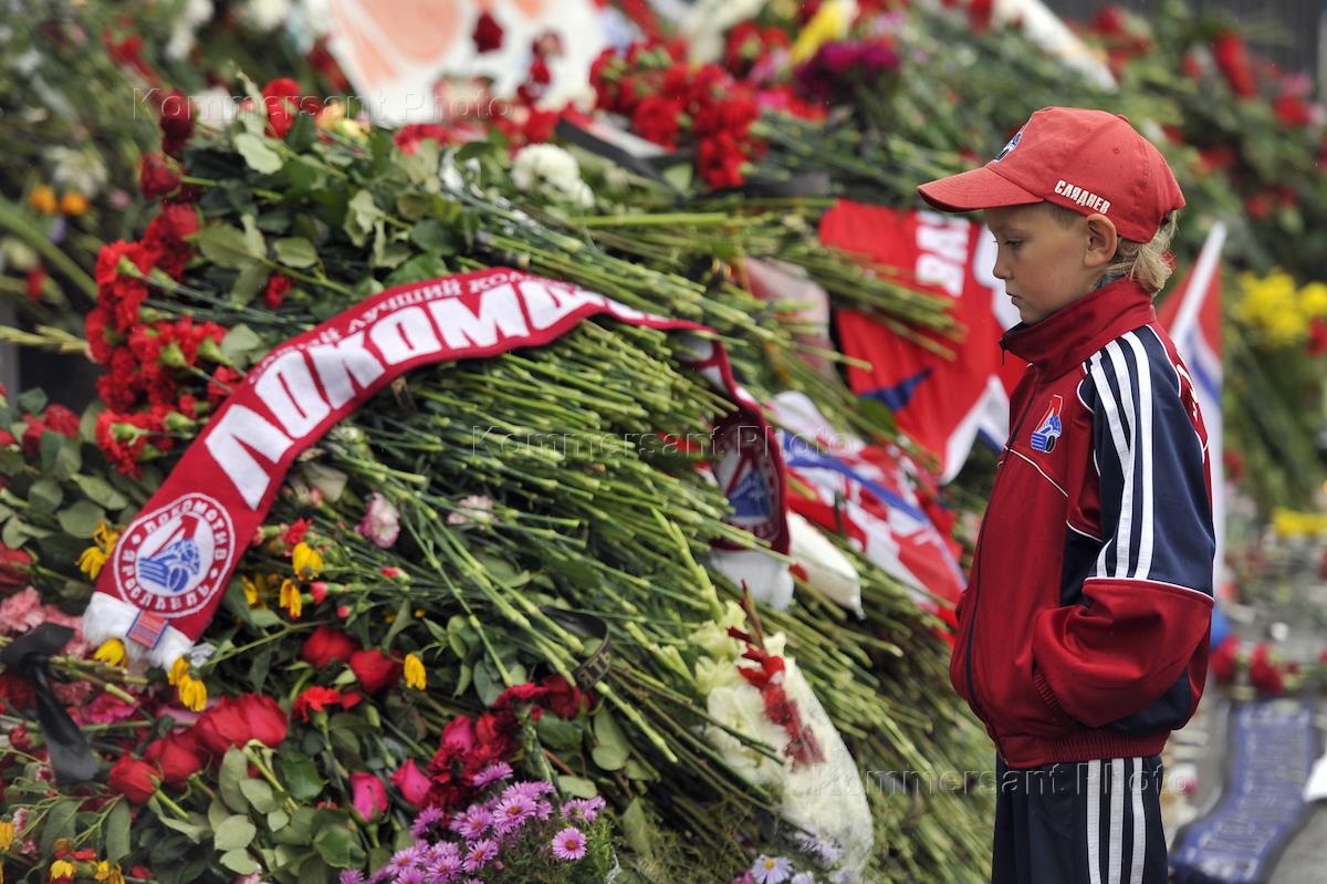 Траурные меропрития, посвященные погибшим хоккеистам ярославской команды "Локомотив" в авиакатастрофе под Ярославлем.