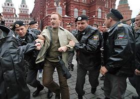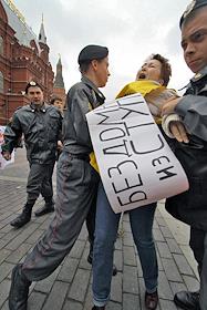 Несанкционированный митинг обманутых дольщиков на Манежной площади.