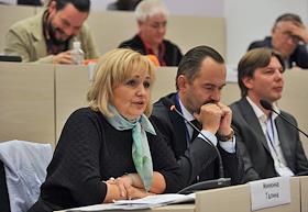 Вице-президент и главный дизайнер компании Philips Хейде ван дер Рохир во время круглого стола,…