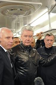 Мэр Москвы Сергей Собянин (в центре) и начальник ГУП "Московский метрополитен" Иван Беседин (справа)…