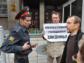 Участник одиночного пикетирования в защиту прав заключенных на коллективные голодовки. Пикет прошел…