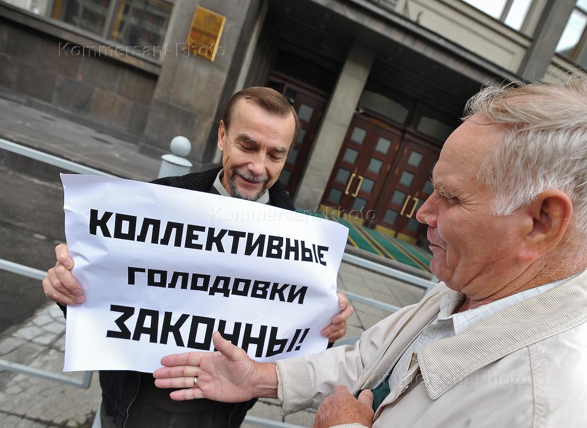 Исполнительный директор движения "За права человека" Лев Пономарев (справа) во время одиночного …