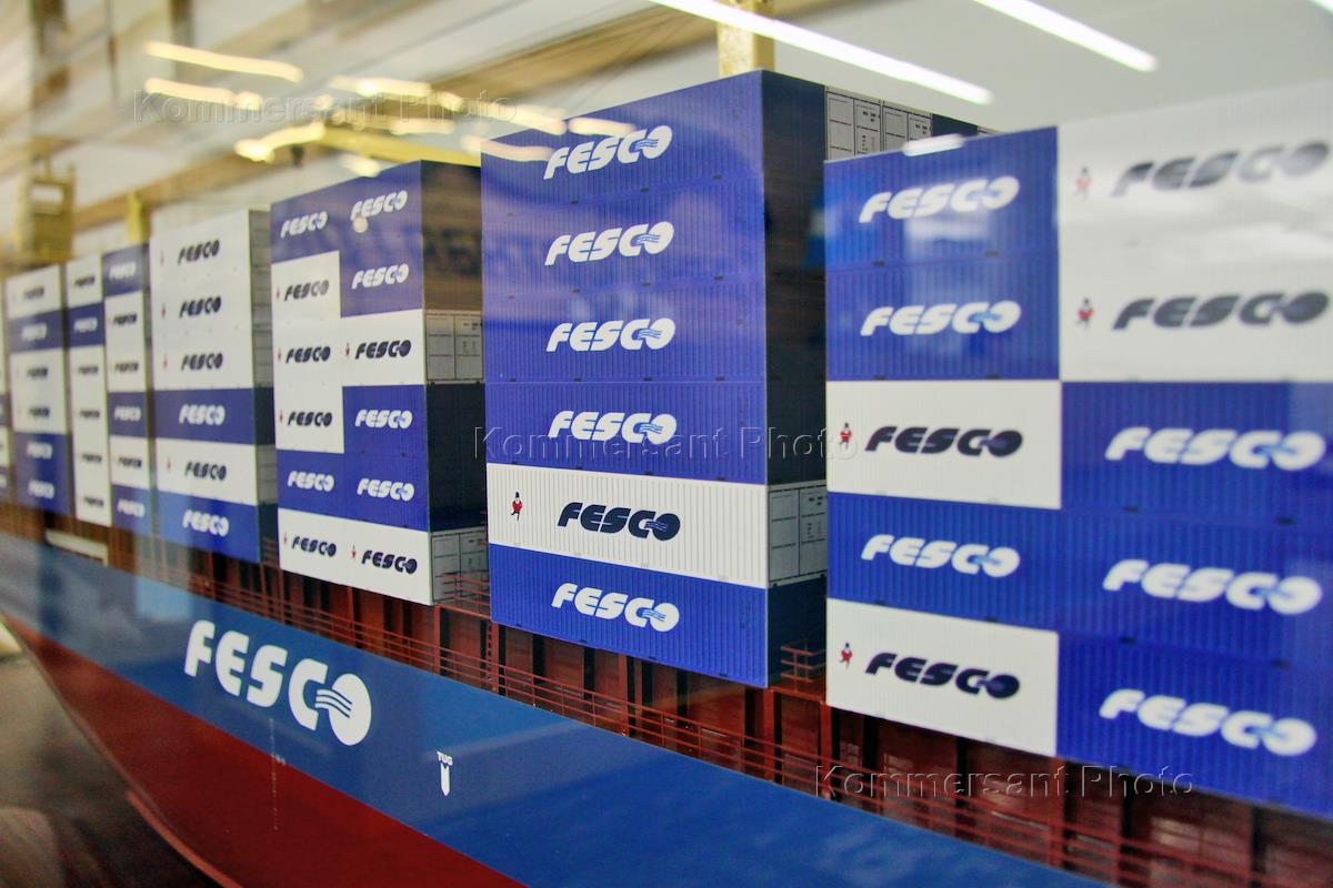 Макет морского грузовоза транспортной компании FESCO в офисе компании.