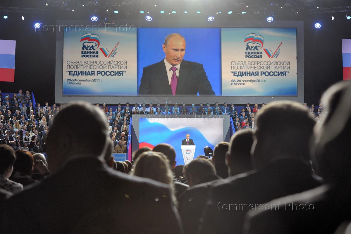 XII съезд Всероссийской политической партии "Единая Россия" прошел в Лужниках. Слева направо во…