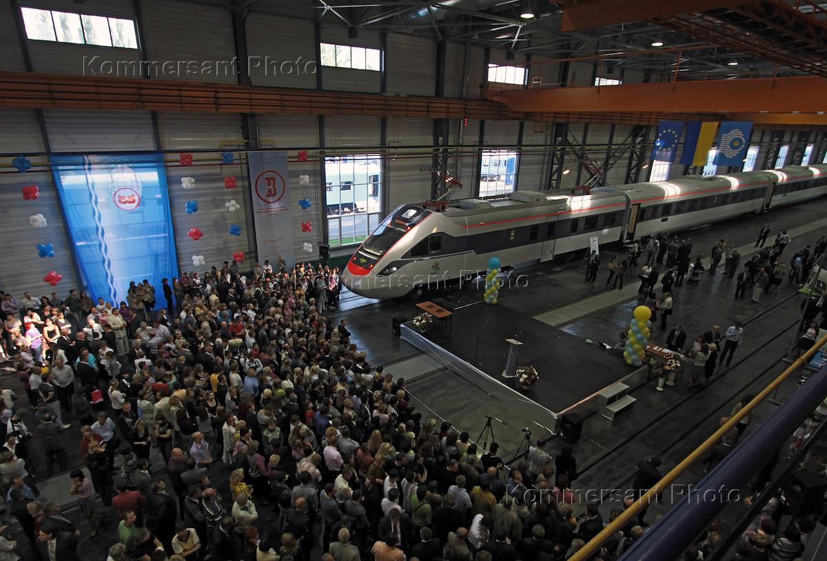 Торжества, посвященные 10-летию отрасли украинского пассажирского вагоностроения, на Крюковском вагоностроительном заводе.