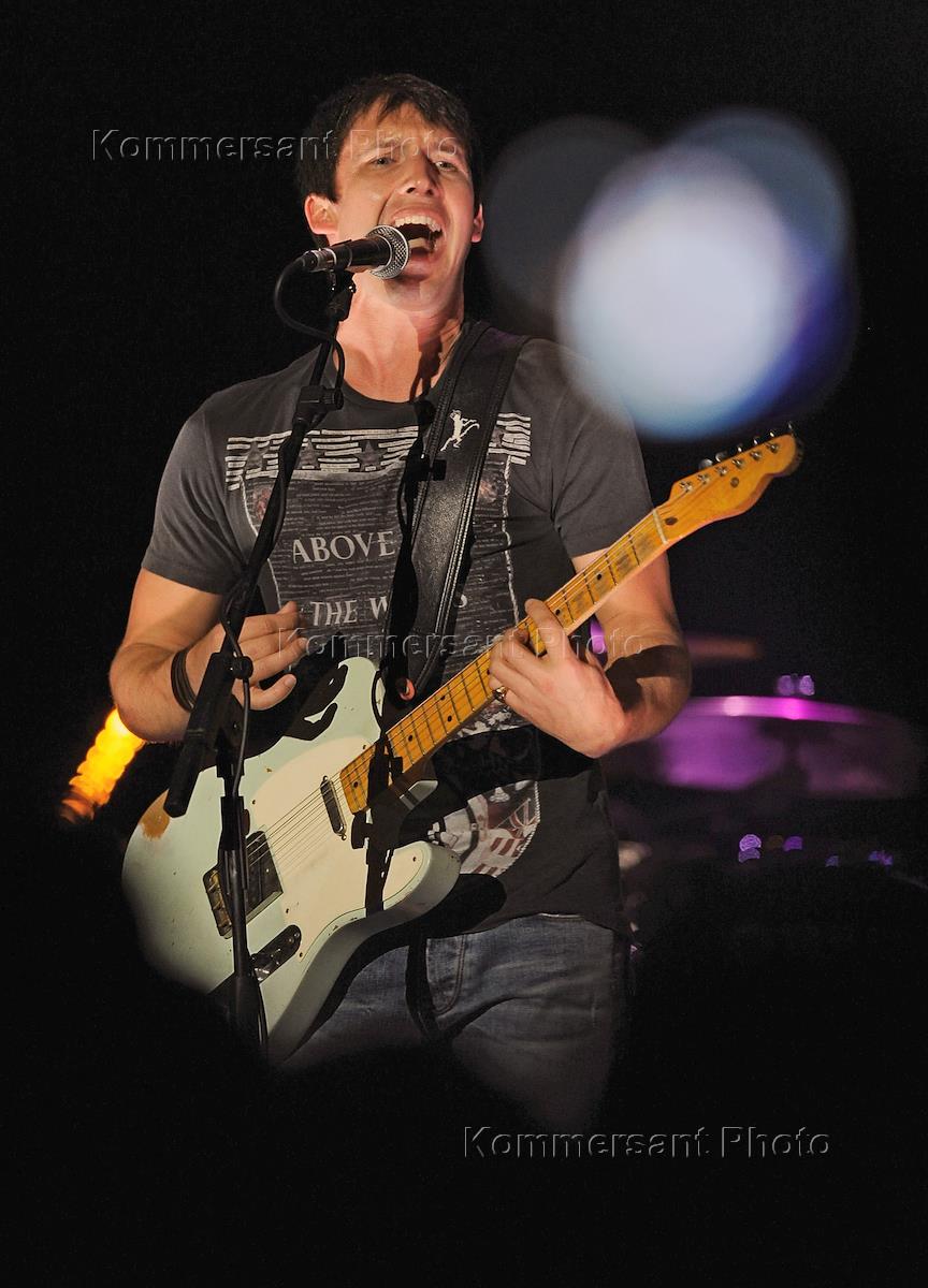 Английский певец Джеймс Блант во время выступления на сольном концерте в концертном зале Crocus City…