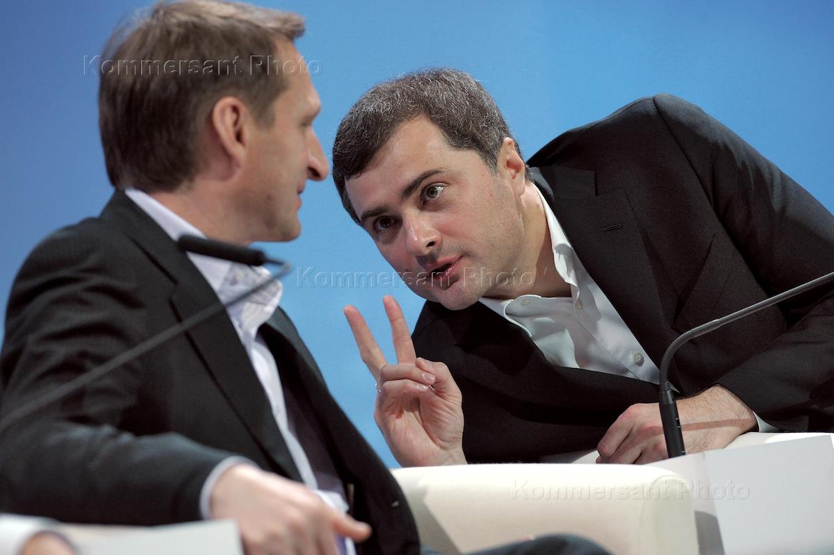 Первый заместитель руководителя администрации президента России Владислав Сурков (слева) и…
