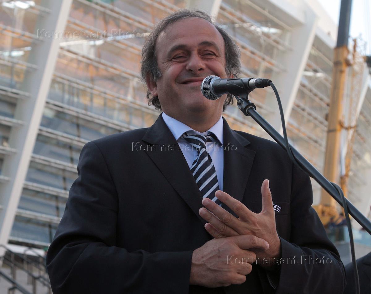 Президент УЕФА Мишель Платини во время пресс-конференции у НСК "Олимпийский".