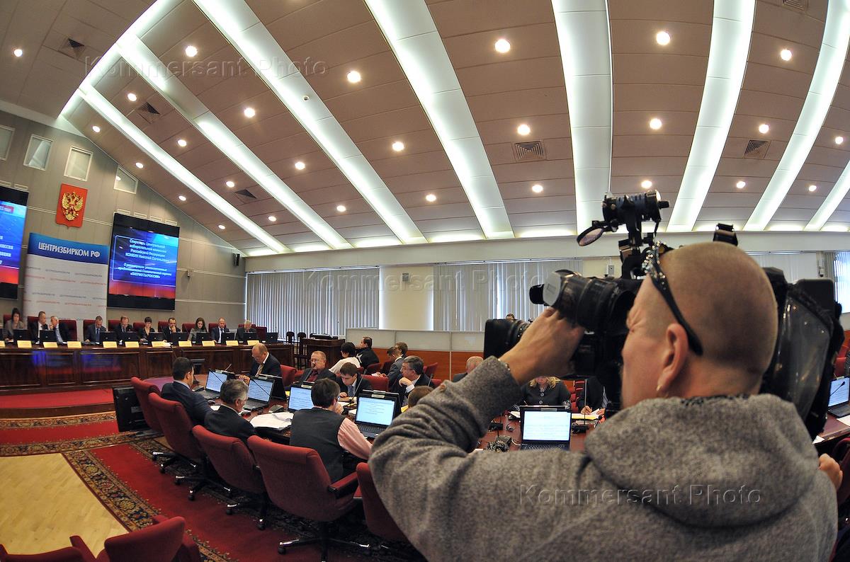 Телеоператоры во время работы на заседании Центральной избирательной комиссии (ЦИК) России на тему :…