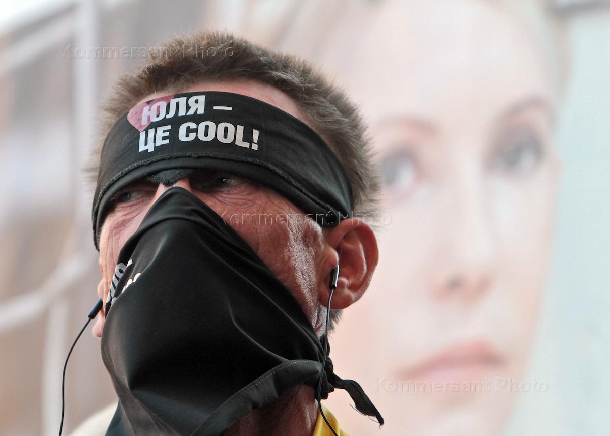 Участник пикета сторонников бывшего премьер-министра Украины Юлии Тимошенко у здания Печерского…