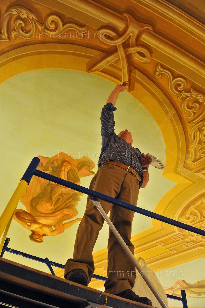 Государственный академический Большой театр (ГАБТ). Рабочие во время установке системы вентиляции в…