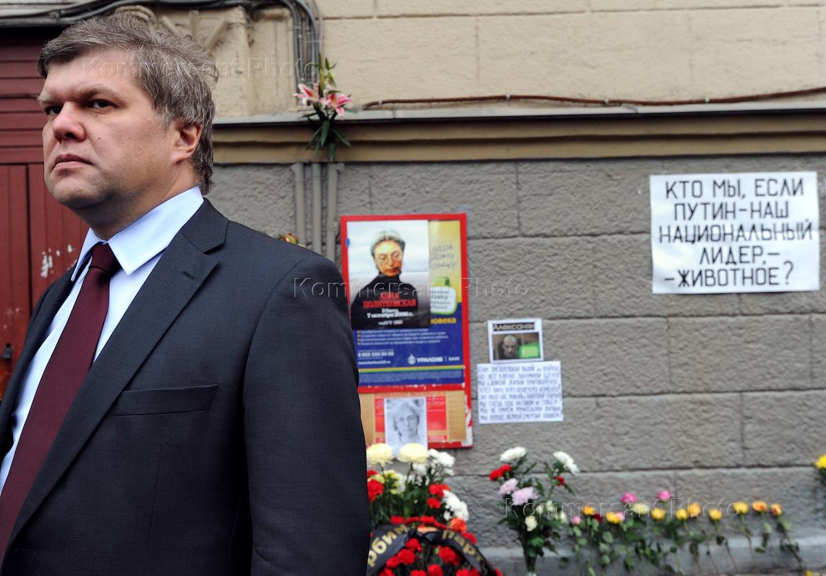 Политика Акция памяти убитой журналистки "Новой газеты" Анны Политковской, организованная активистами партии "Яблоко". Возложение цветов к месту убийства Анны Политковской.