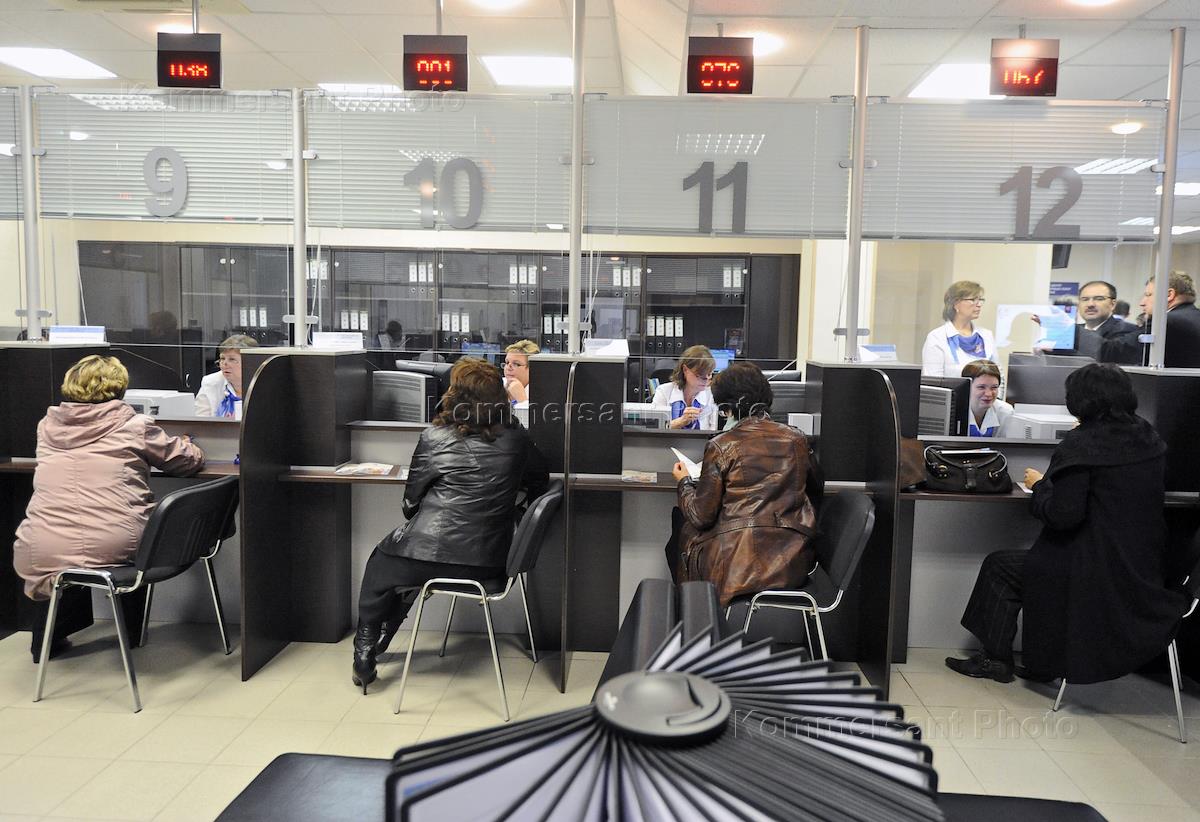 Посетители многофункционального центра (МФЦ) предоставления государственных услуг района…