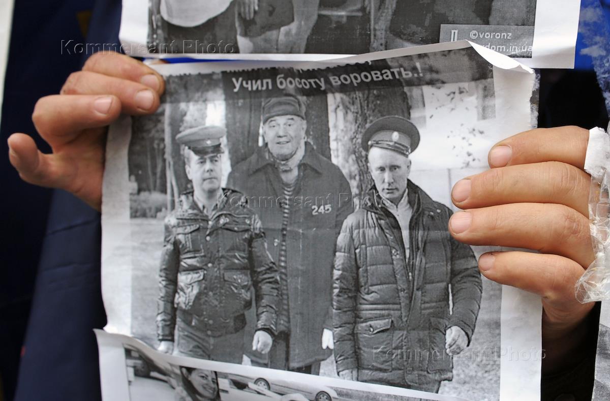 Акции в поддержку бывшего премьер-министра Украины Юлии Тимошенко. Плакат с портретами президентов…