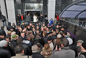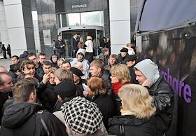 Очередь желающих продать акции компании "Норильский никель" у офиса компании Computershare.