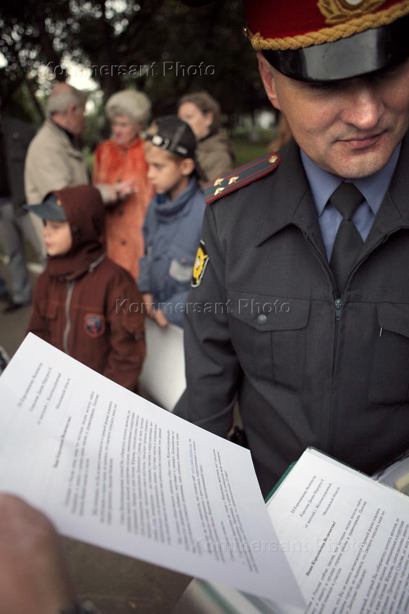 Сотрудниек правоохранительных органов во время пикета жителей города Железнодорожного,…