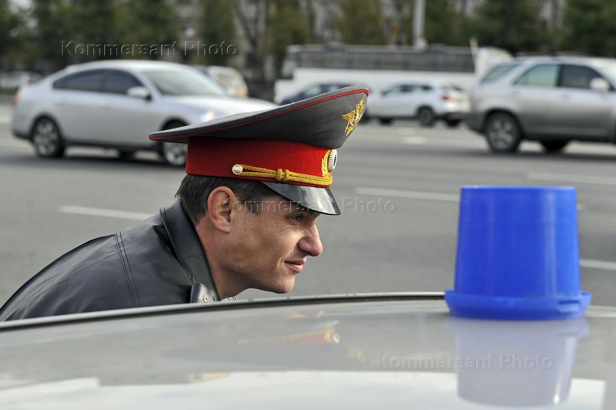 Сотрудник полиции во время пикета общества "Синих ведерок". Пикет прошел у Бородинской панорамы на…