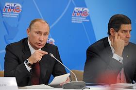 Председатель правительства России Владимир Путин (слева) и исполнительный директор аудиторской…