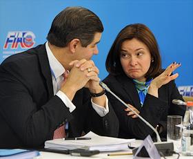 Исполнительный директор аудиторской компании Ernst & Young Global Джеймс Терли (слева) и министр…
