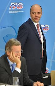 Исполняющий обязанности министра финансов России Антон Силуанов (справа) на 25-ом пленарном…