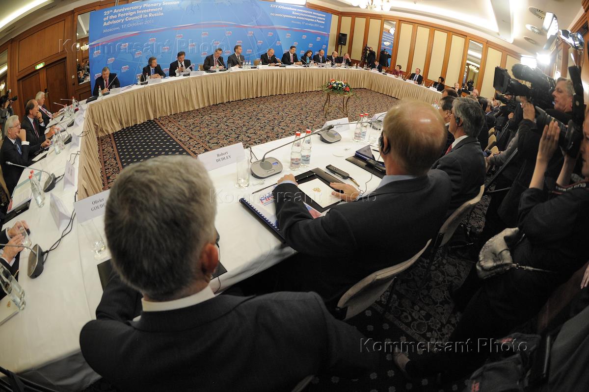 Экономика и бизнес Председатель правительства России Владимир Путин на 25-ом пленарном заседании Консультативного совета по иностранным инвестициям (КСИИ), в отеле "Балчуг Кемпински".