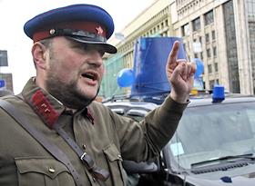 Участник пикета общества "Синих ведерок" на площадке у дома 10 на проспекте Академика Сахарова.