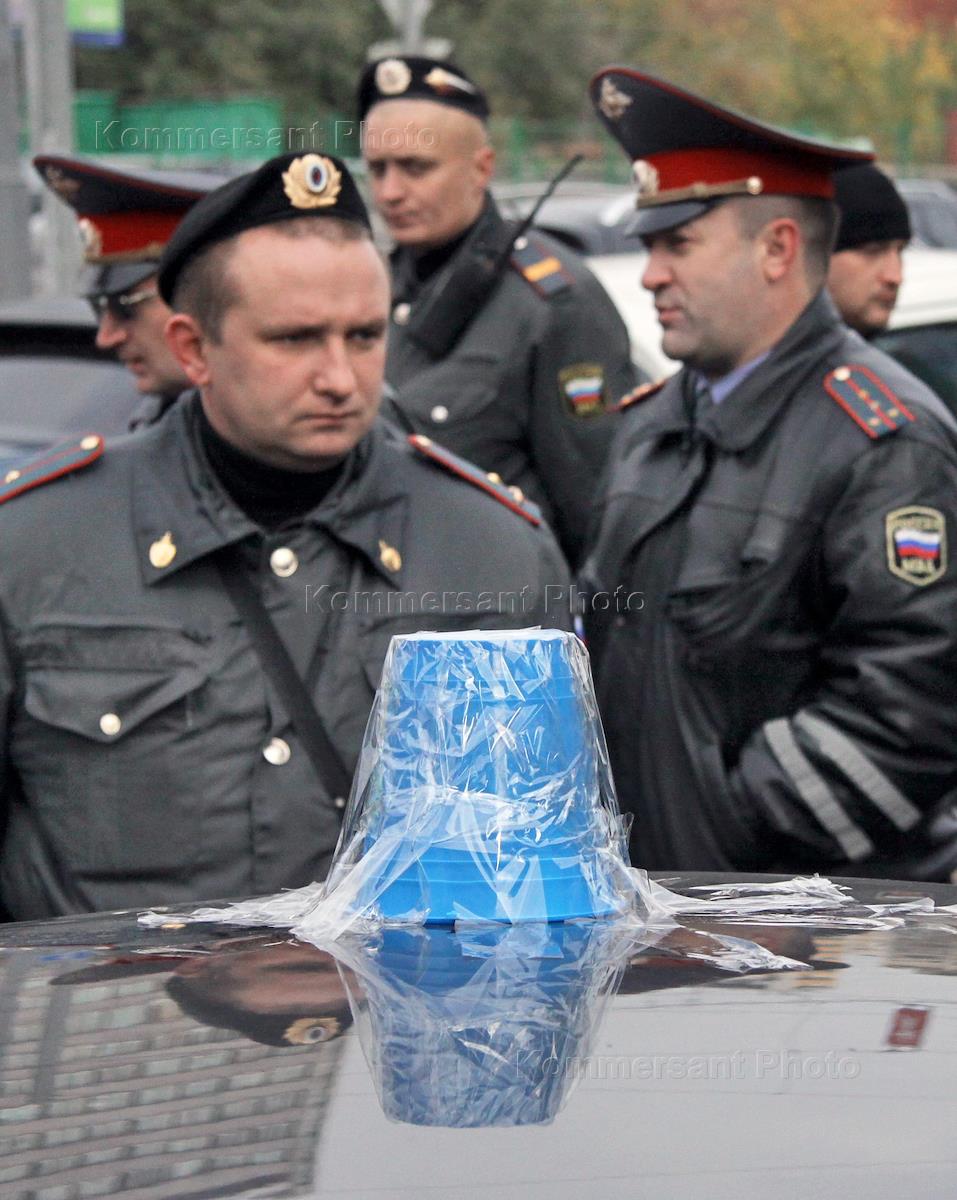 Сотрудникин полиции во время пикета общества "Синих ведерок". Пикет прошел на площадке у дома 10 на…