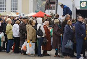 Покупатели во время посещения Юнагородской ярмарки.