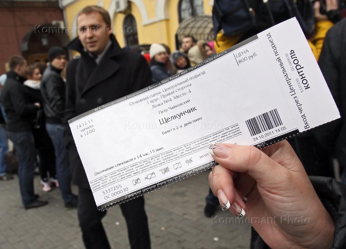 Очередь в кассы Государственного академического Большого театра. Билет на балет "Щелкунчик" в руке у…