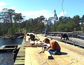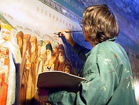 Остров Валаам. Спасо-Преображенский собор. Художник расписывает стены.