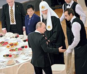 Председатель правительства России Владимир Путин (в центре слева) и Патриарх Московский и всея Руси…