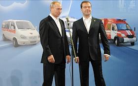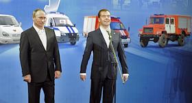Президент России Дмитрий Медведев (слева) и председатель правительства России Владимир Путин…