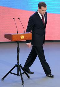 Президент России Дмитрий Медведев (слева), председатель правительства России Владимир Путин (в…