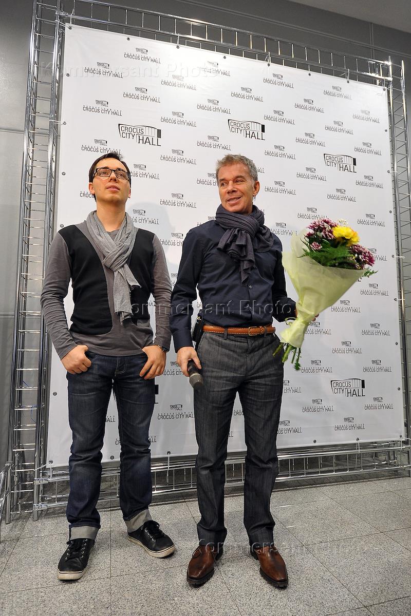 Певец Родион Газманов (слева) и певец Олег Газманов (справа) на сольном юбилейном концерте,…